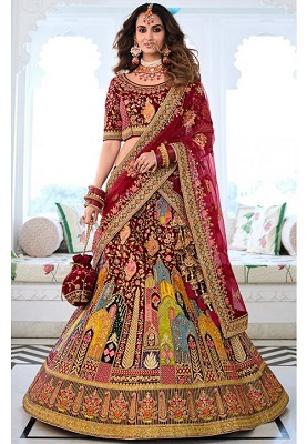 Hey! Its wedding time, and you looking for that perfect lehenga that projects just the right amount of glamour and grandeur? Well, heavily embellished lehenga designs are one of the most sought-after styles for brides-to-be. Perfect for all wedding occasions from engagement to sangeet, most sought of them the mirror work lehengas will not only make you sparkle on your big day but sweep your beau off his feet. From glistening mirror work to the eye-catching color palettes, these mirror work lehengas can be nothing short of your dream wedding outfit for all the brides-to-be. Heavily embellished mirror lehengas are one of the most amazing creations. These mirror work lehengas make perfect outfits for pre-wedding functions, as in, for the mehendi morning they make you seem like you are glowing. Whereas, for the sangeet night, they provide the perfect amount of glitz and glam that outshines everything and everyone. Heavily embellished ones can look rich and have such a high quotient of glamour that you instantly become the center of attention.